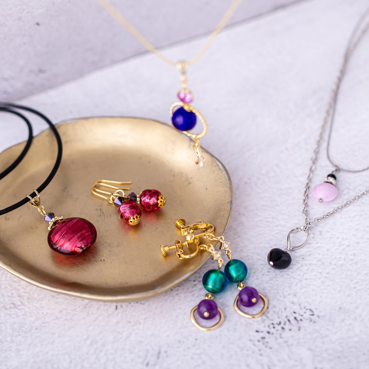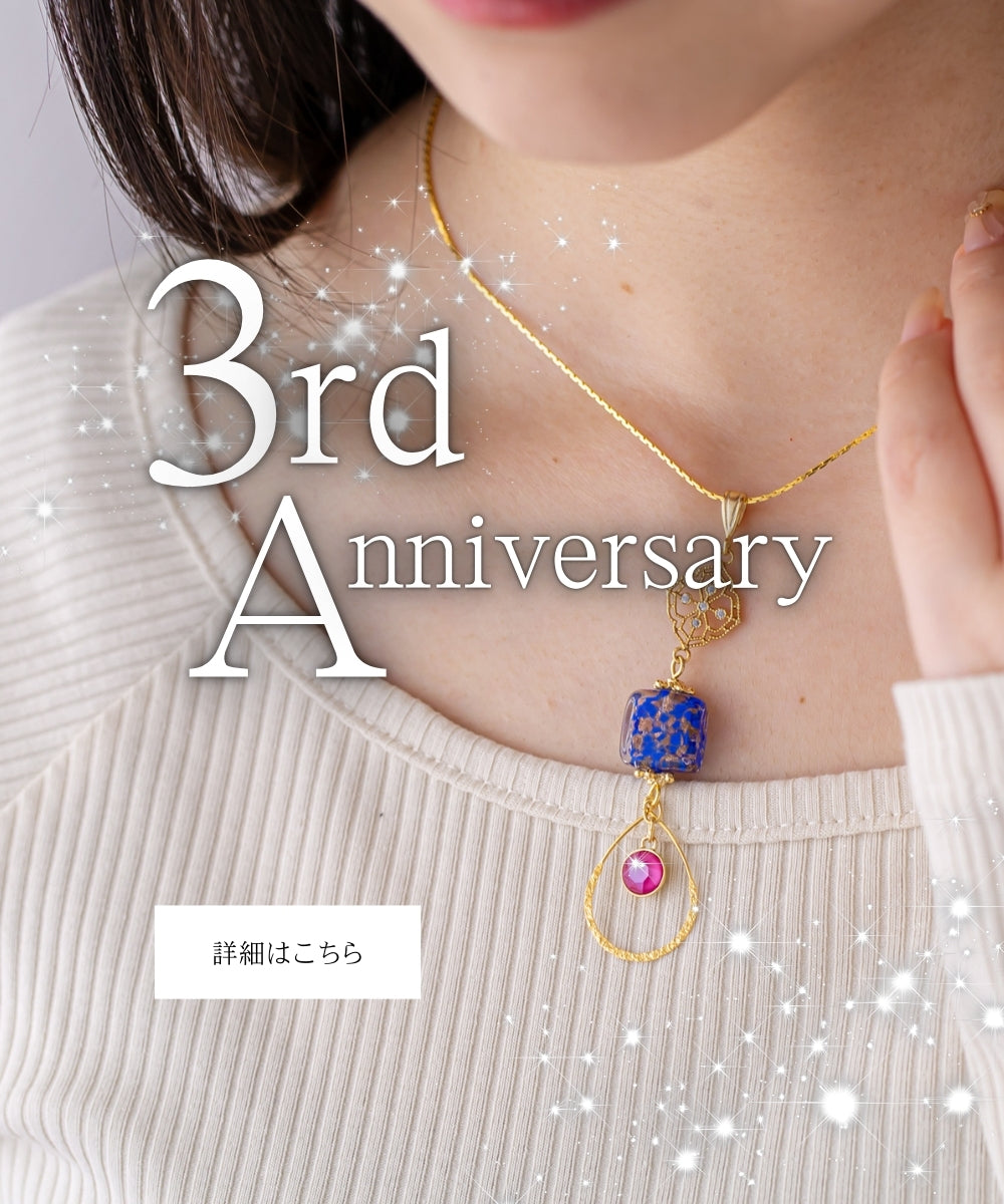 素材は希少なイタリア製のベネチアガラスや良質な天然石。長く愛着を持ってお側においていただけるように、こだわりのメインパーツを使用します。