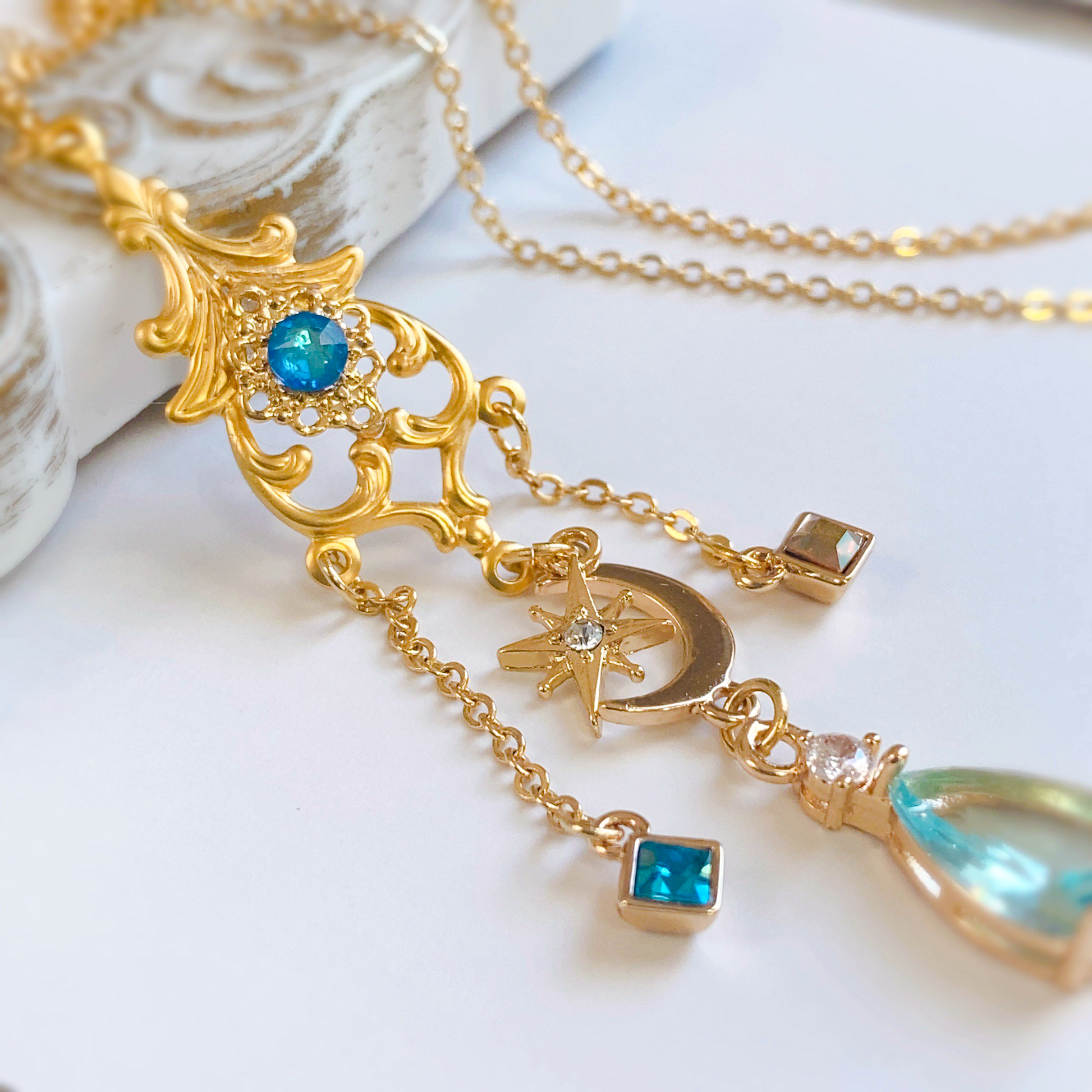 【シャルエ】魔法帽に揺れる星月の宝飾【イメージネックレス】