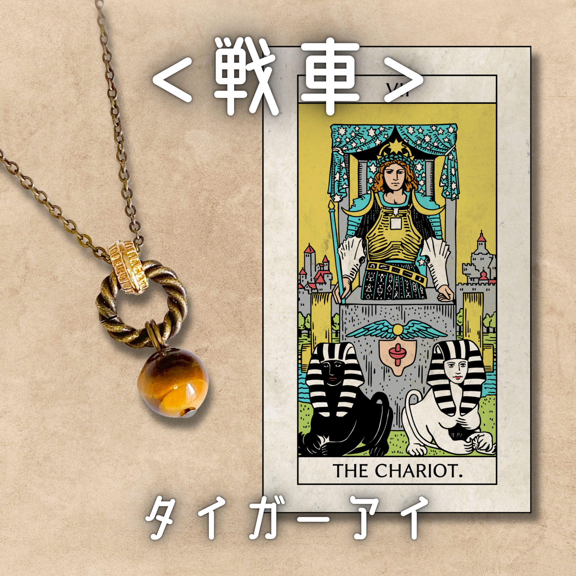 メインには天然石の[タイガーアイ]を使用し、 行動力・集中・ブレない信念という共通の意味でもって目標達成への強力な後押しとなるアクセサリーにデザインしました。太めのツイストリングと、スフィンクスを表す2本のリングをバチカン代わりに使い、力強い印象に。