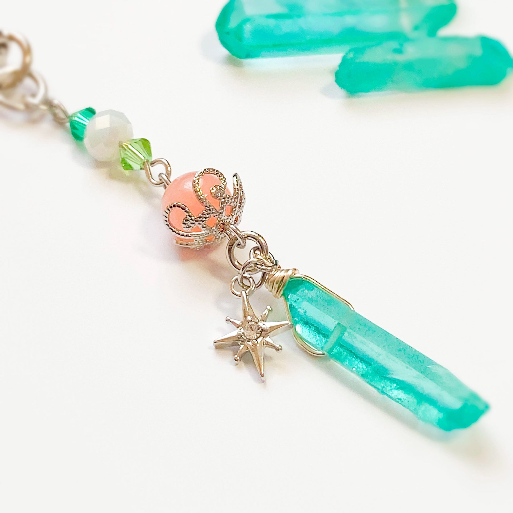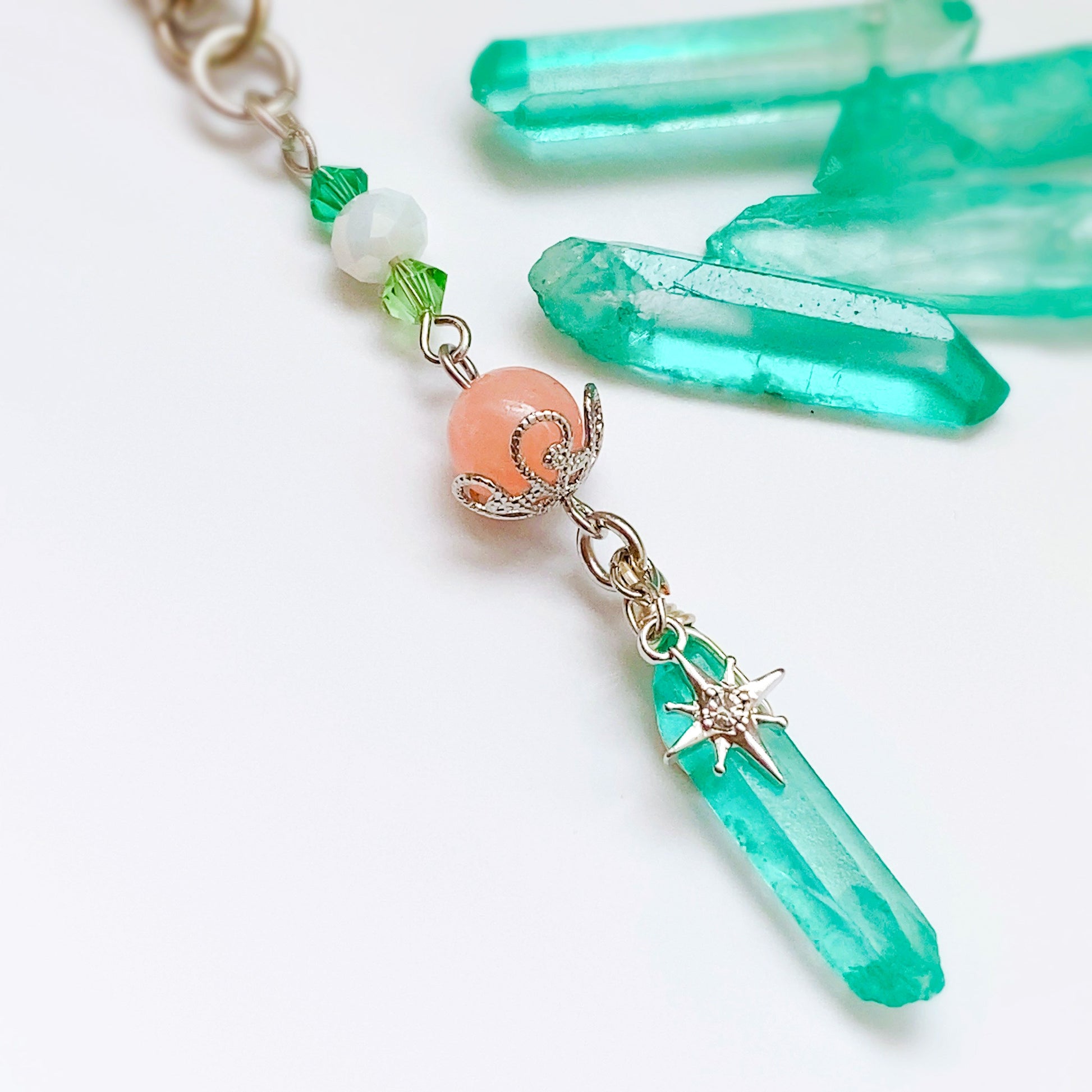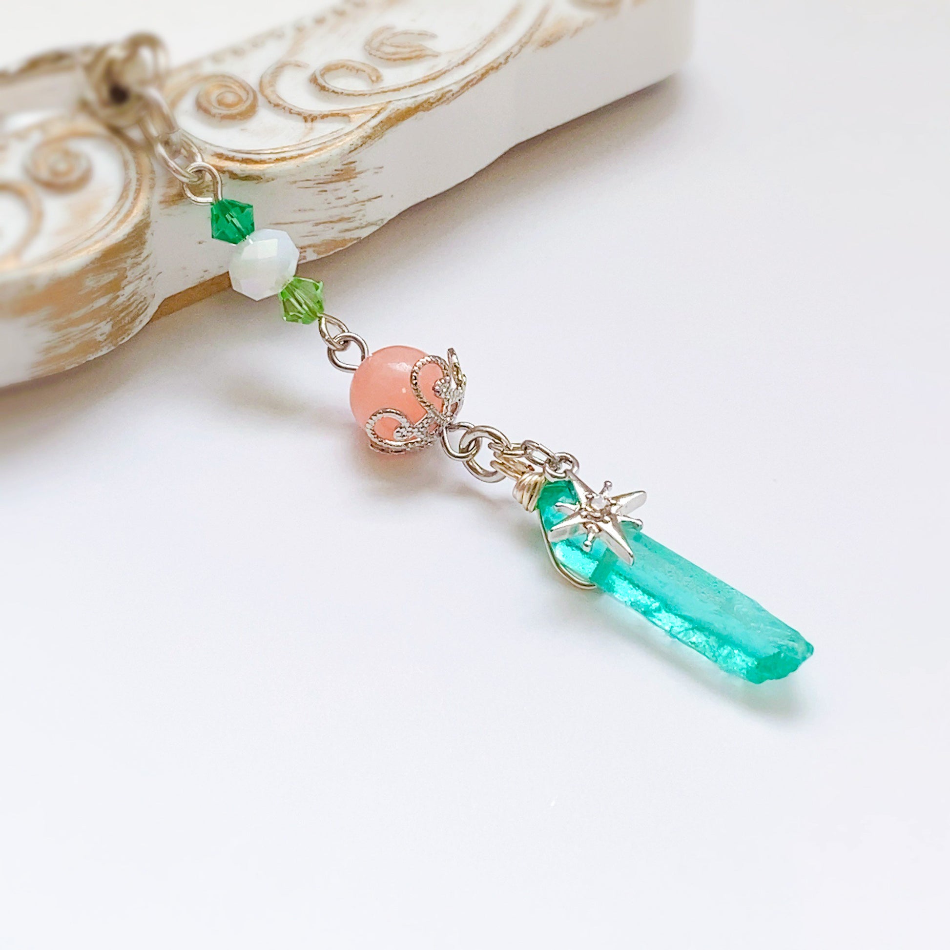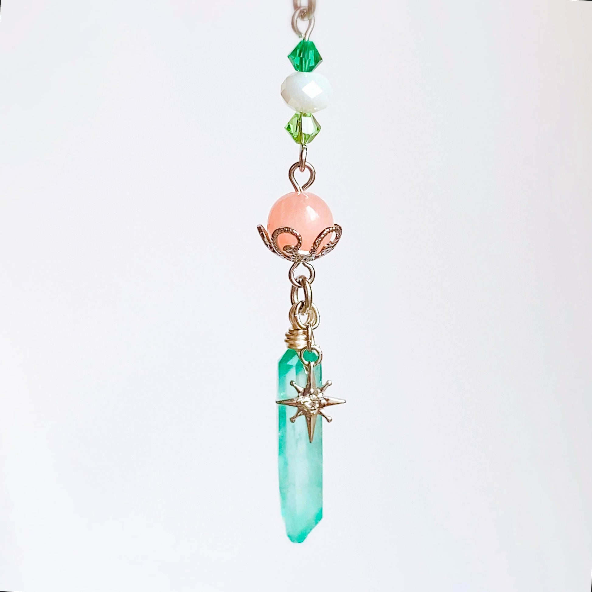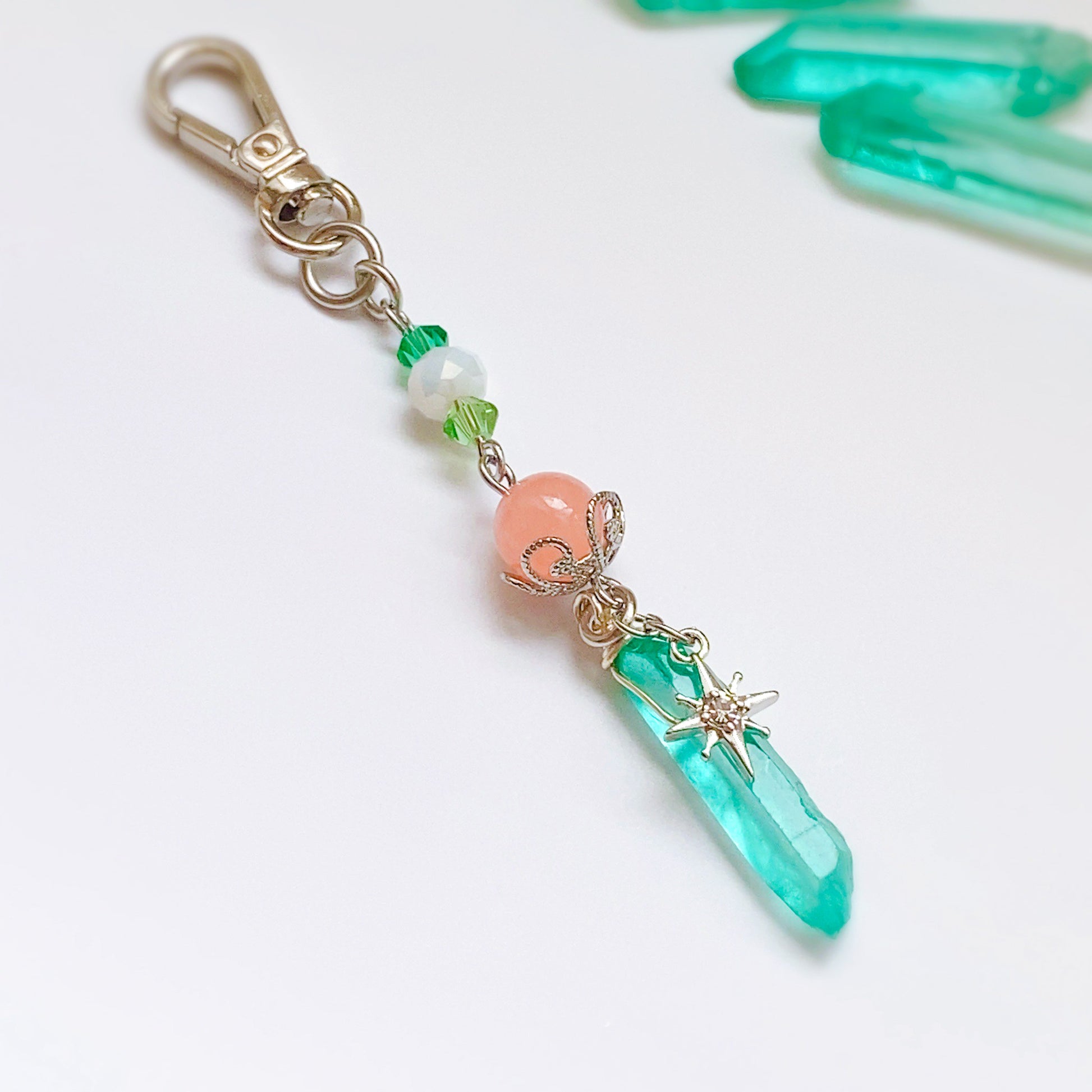 柱形のグリーンクリスタルも天然石。柔らかく繊細な石なので、ご自身の心のように丁重に扱ってあげてくださいね🙇♀️