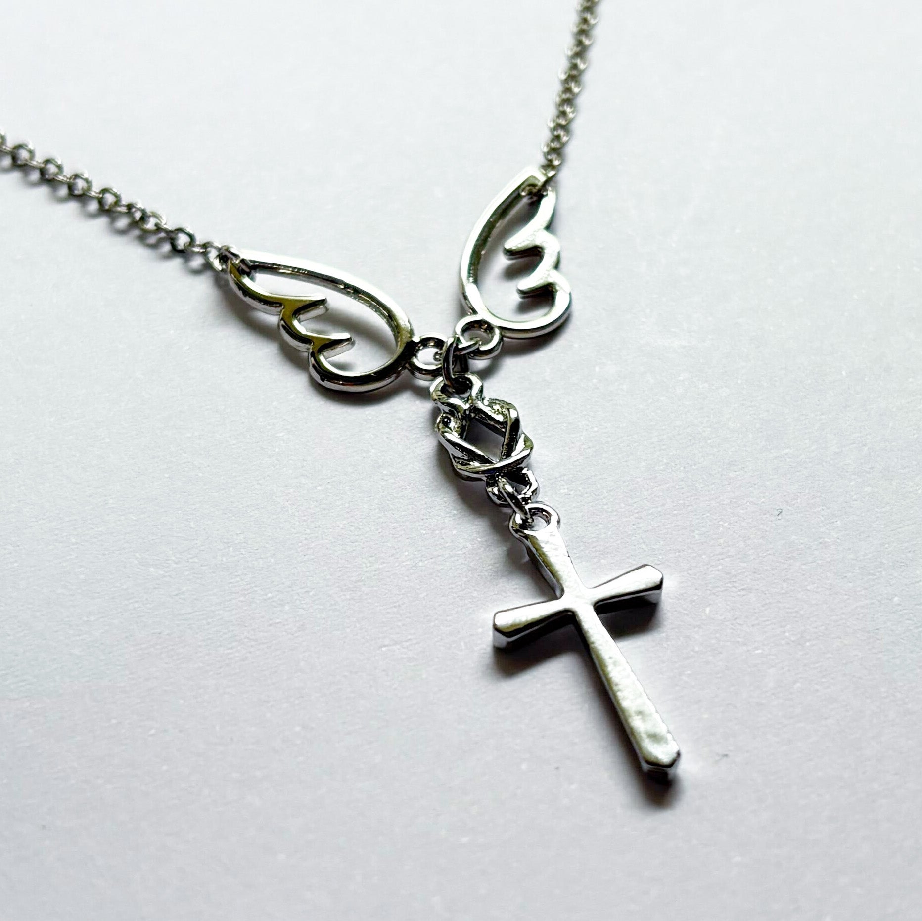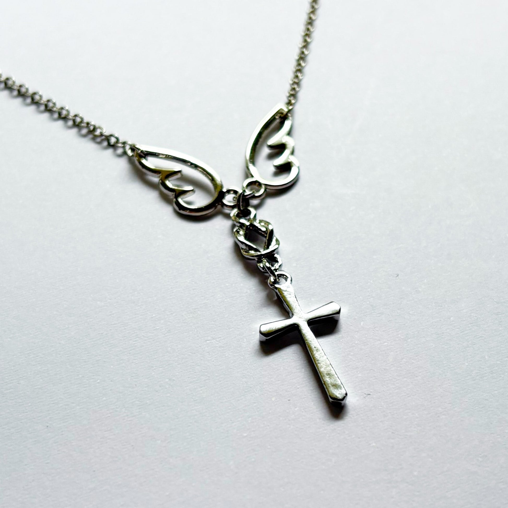ネックレスとして身につければ夜空に羽ばたく天使のように羽が広がり、キーホルダーでは宿木で一時の休息をとっているかのように羽が閉じるデザイン。
