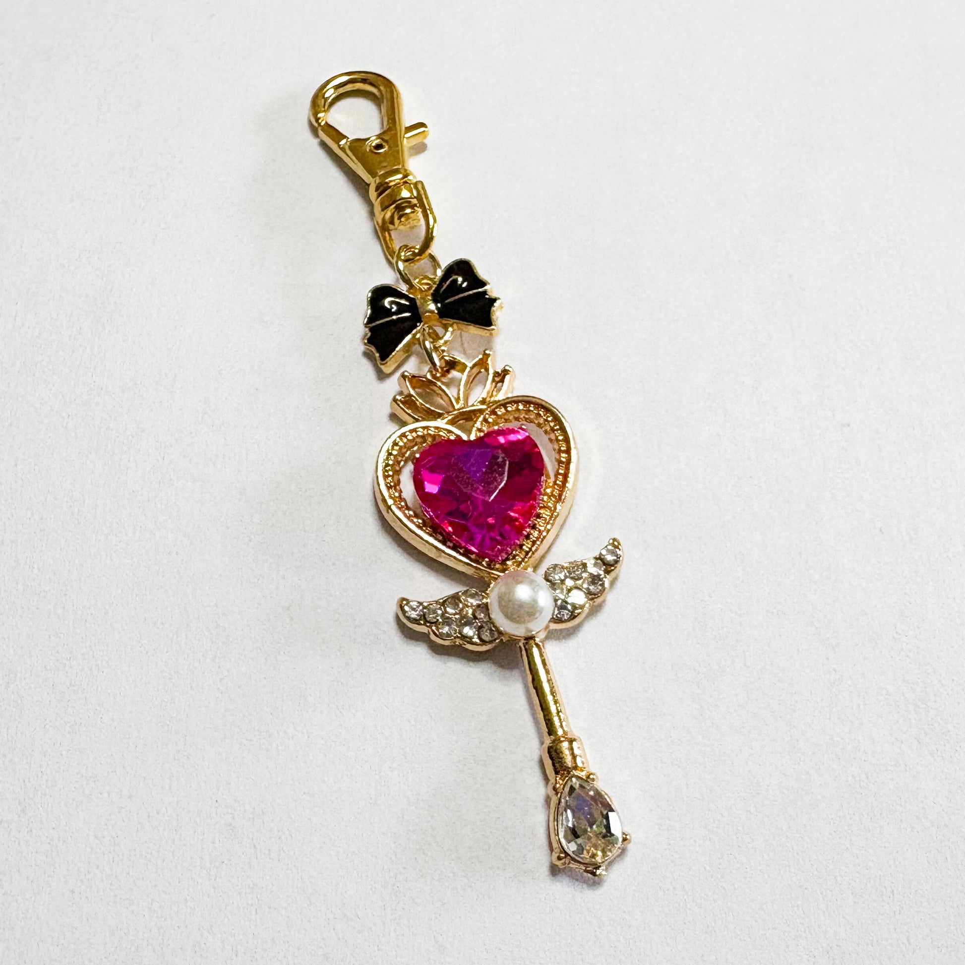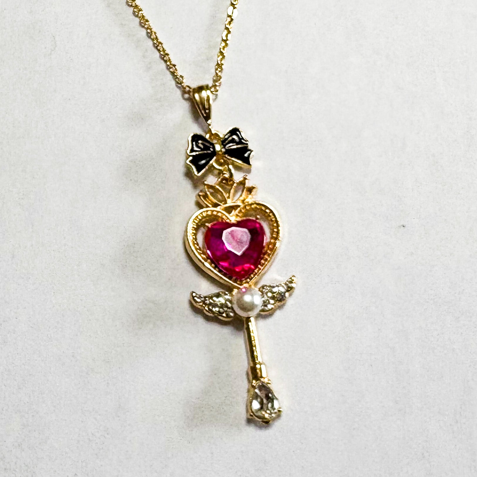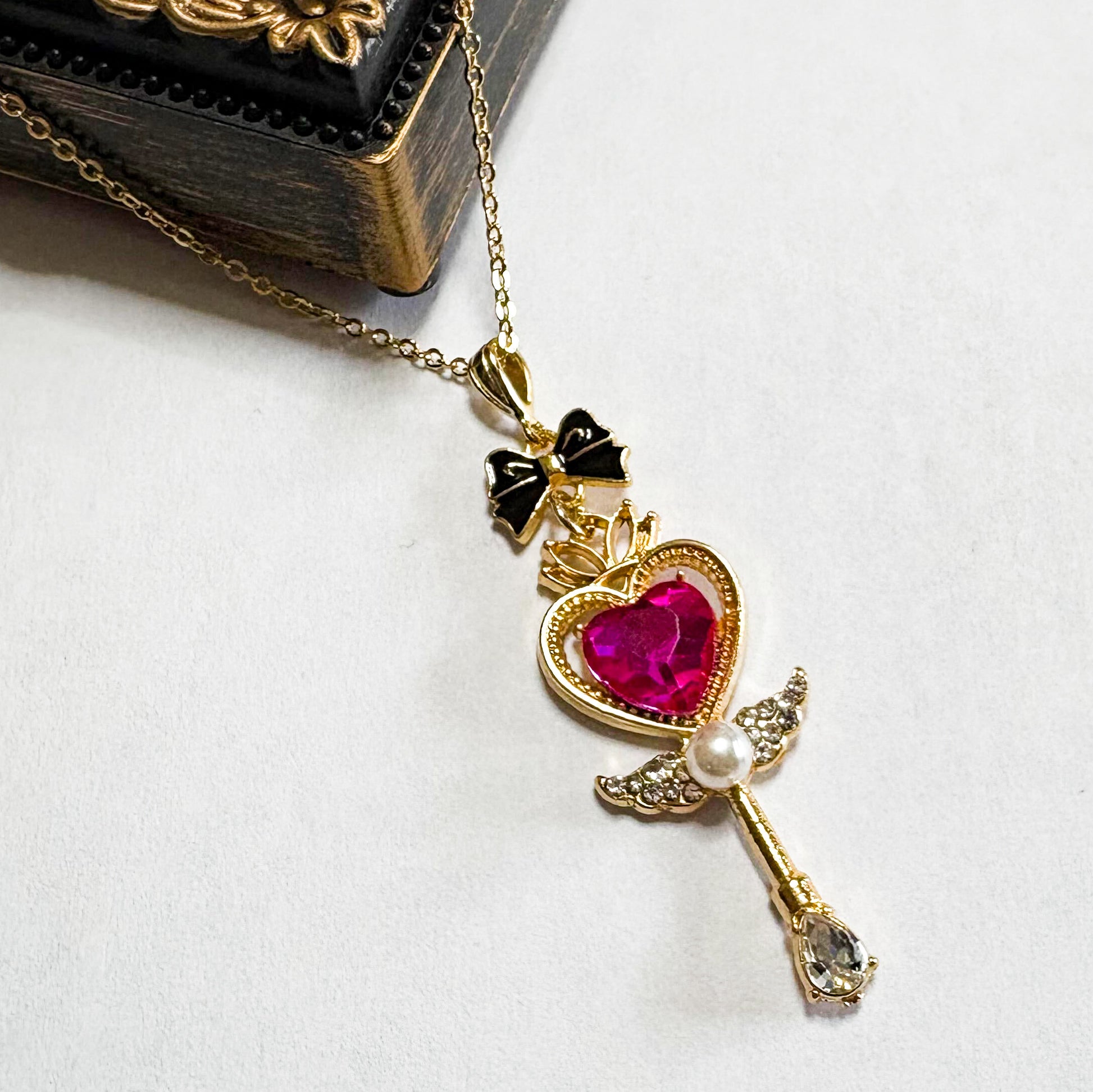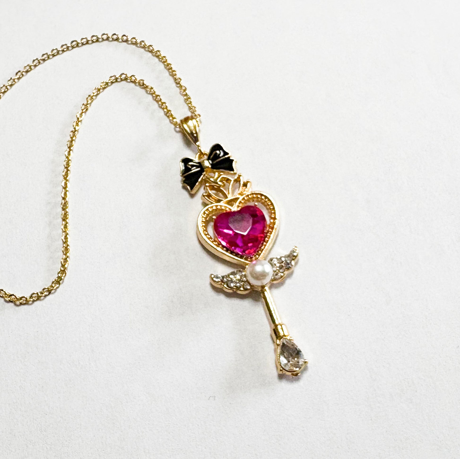 魔法のステッキをモチーフに、黒のリボンチャームがキュートなネックレスです♪