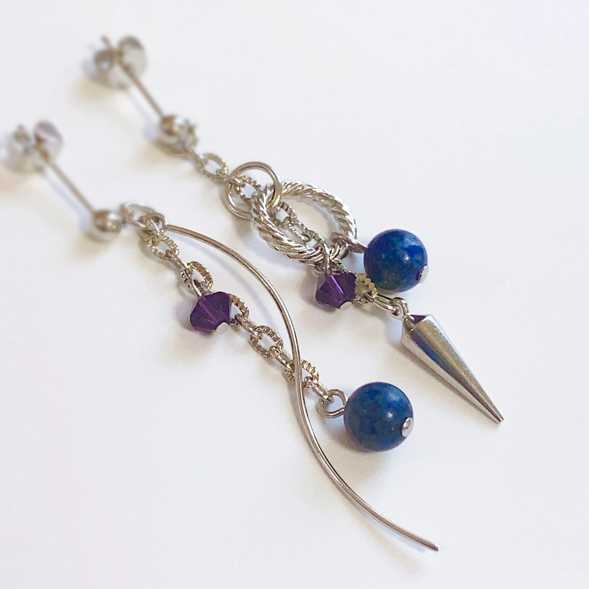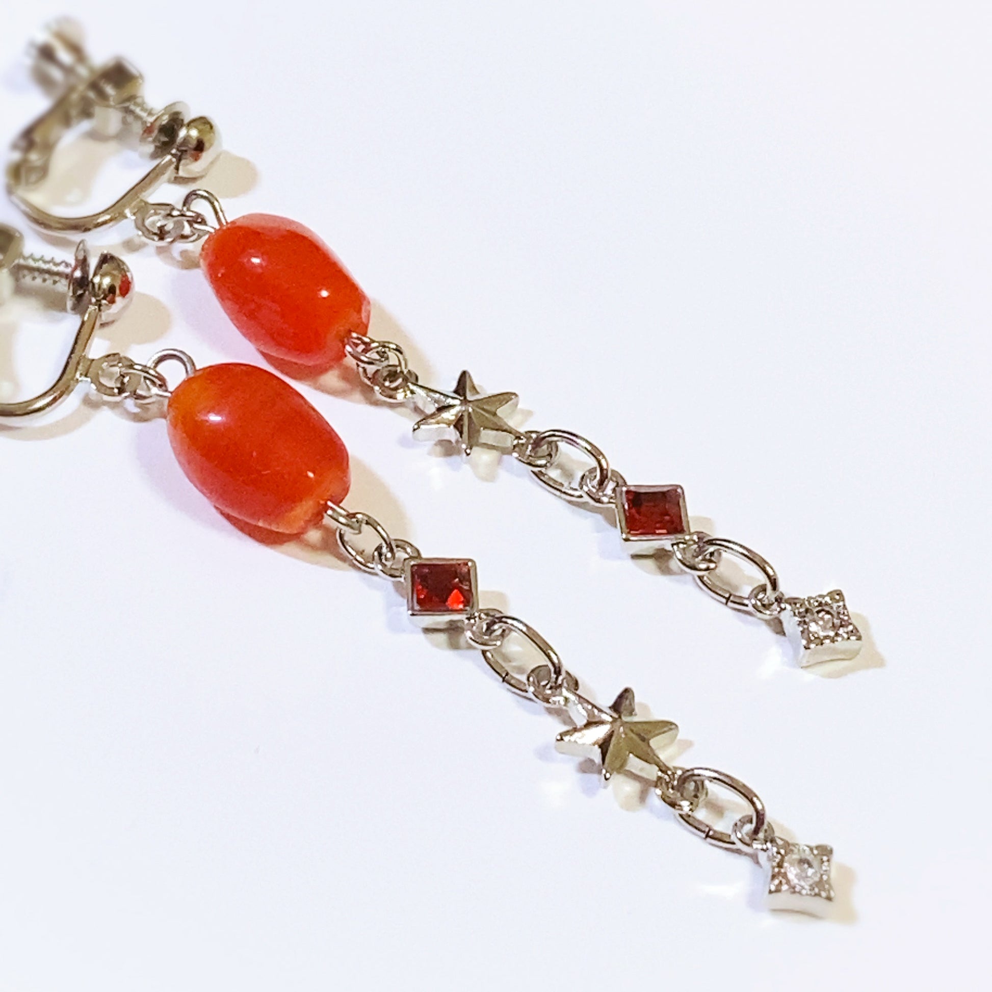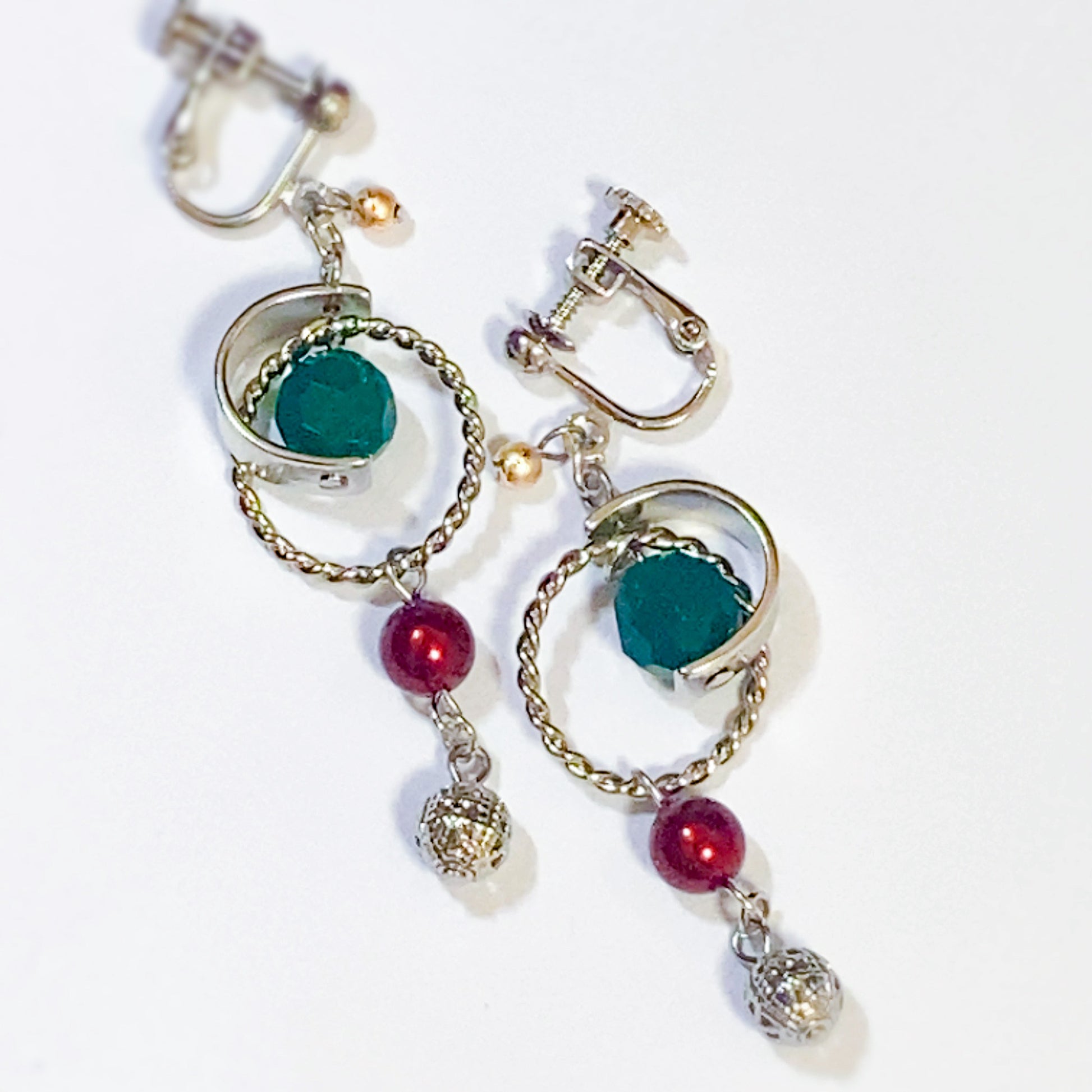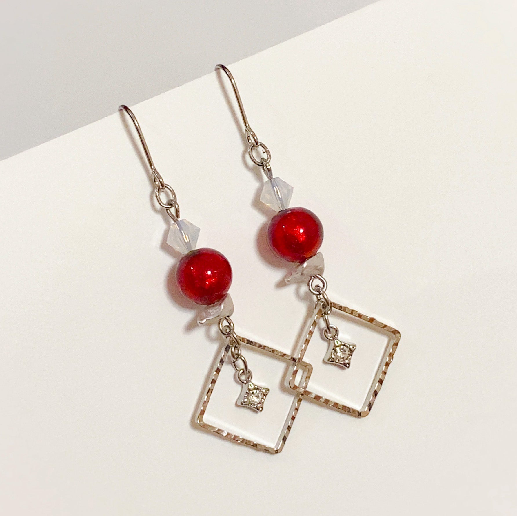 イメージパーツとベネチアガラスが上下に連なったデザインのドロップピアス/イヤリング