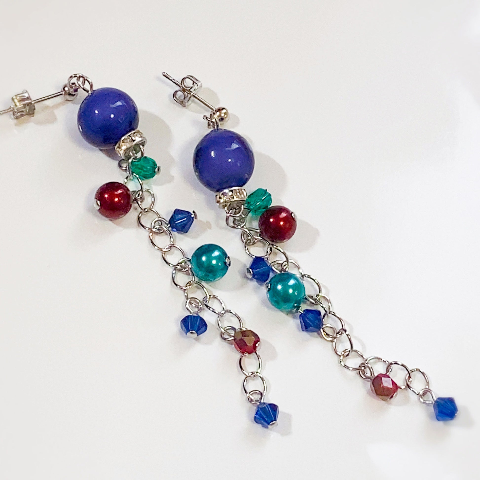 ベネチアガラス&マルチビーズ ドロップピアス/イヤリング