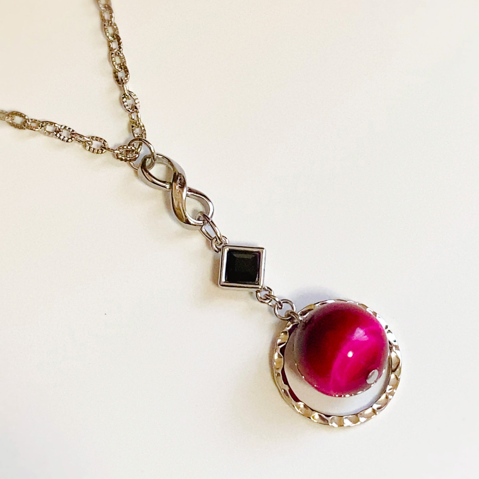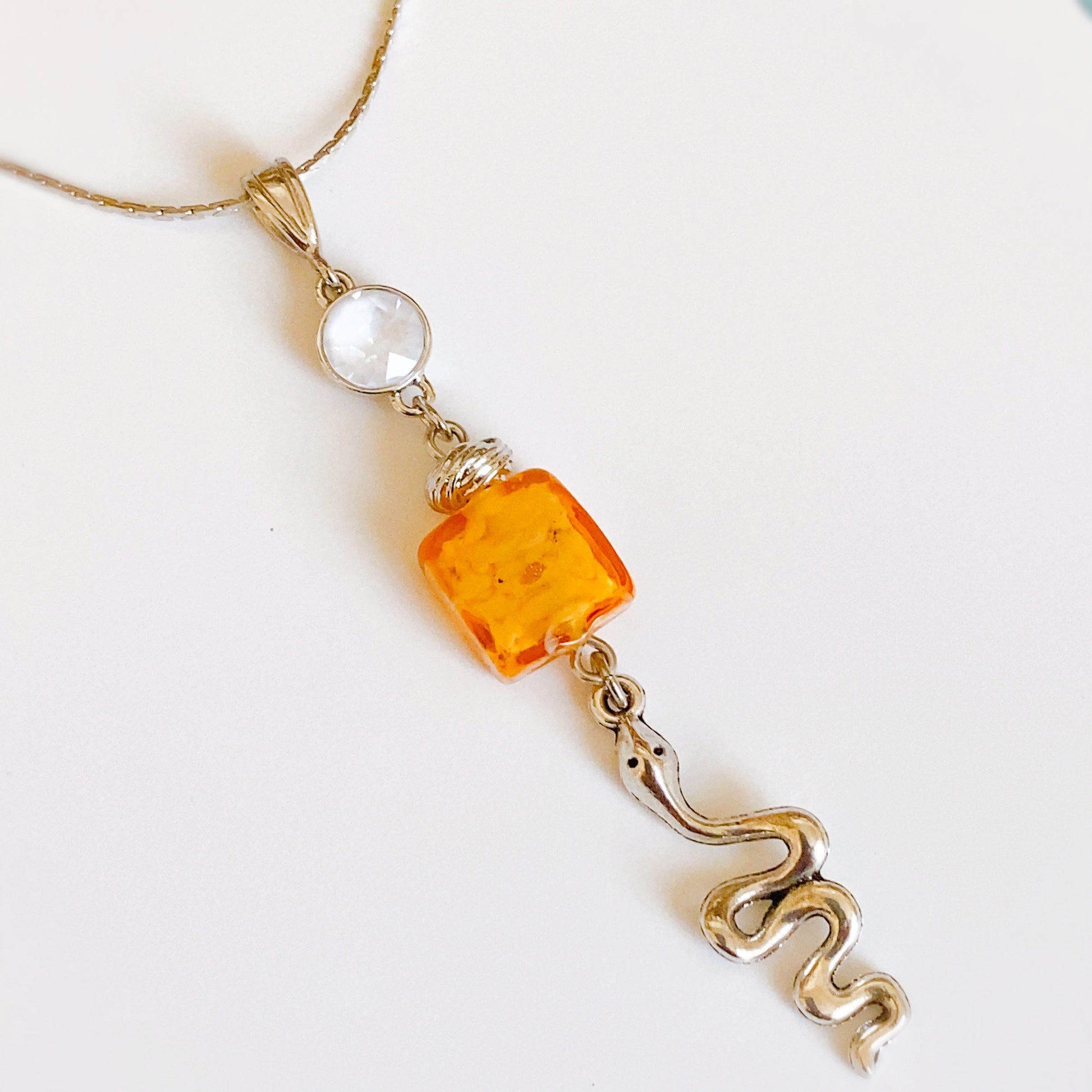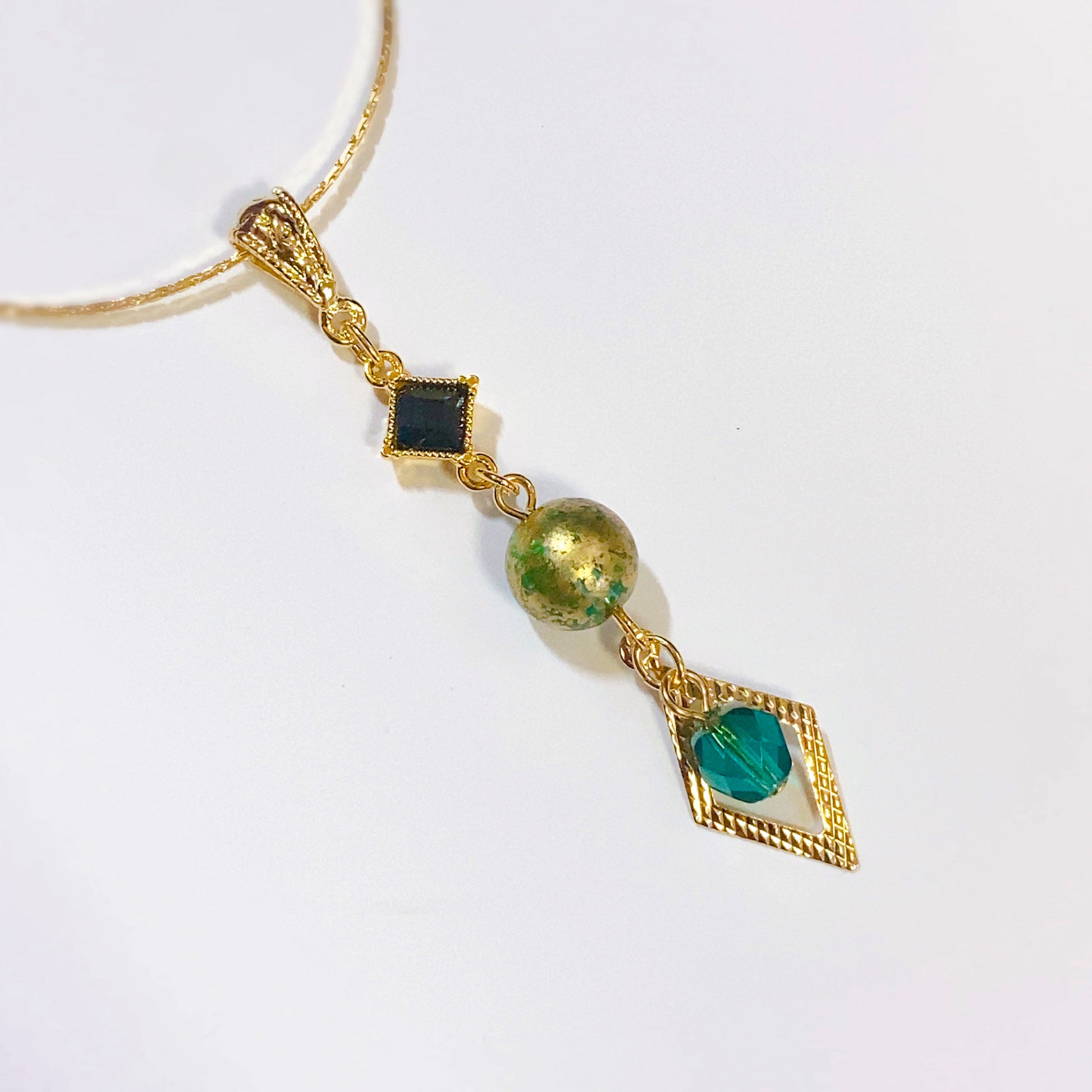 ベネチアガラスの上下にイメージパーツを配置したデザインのネックレス