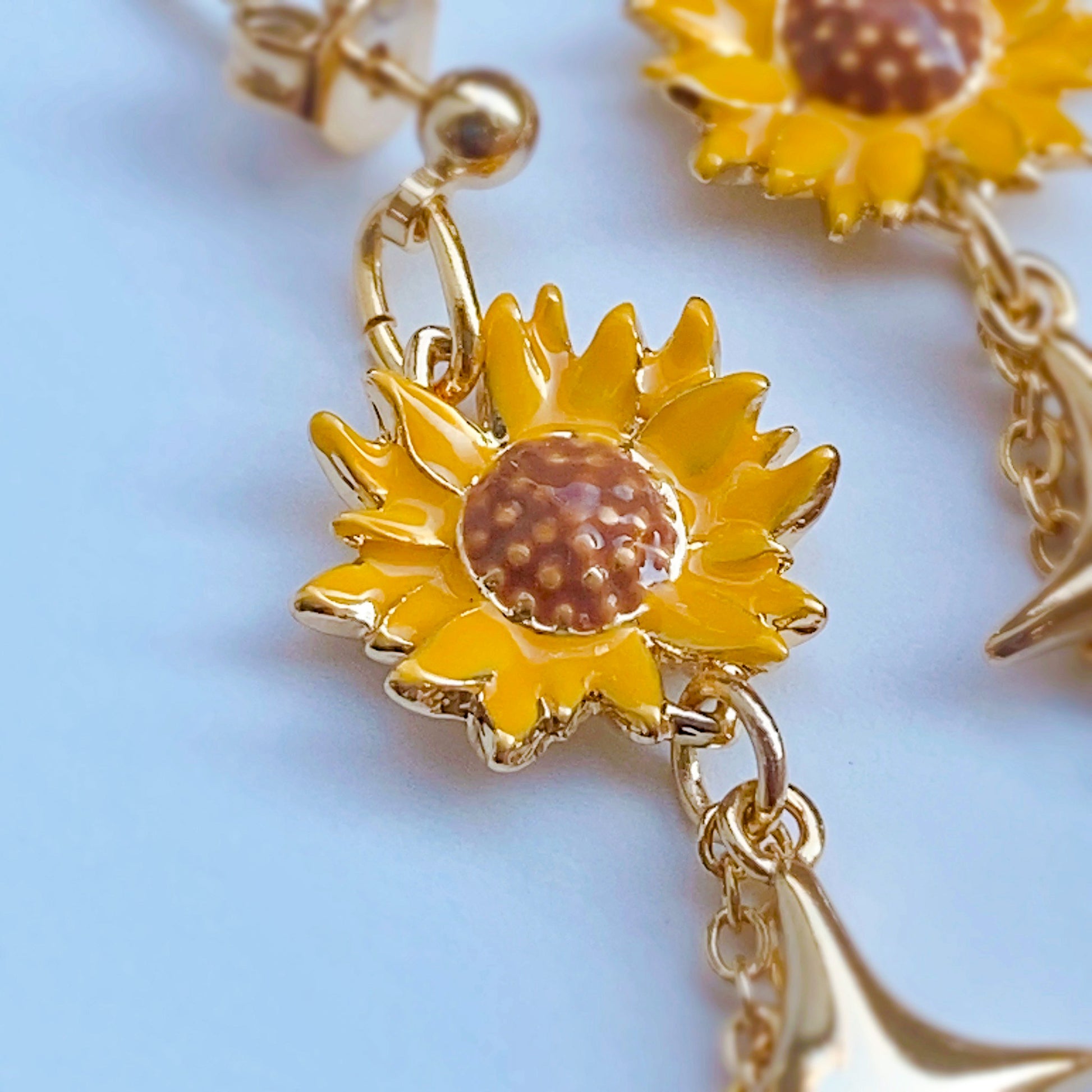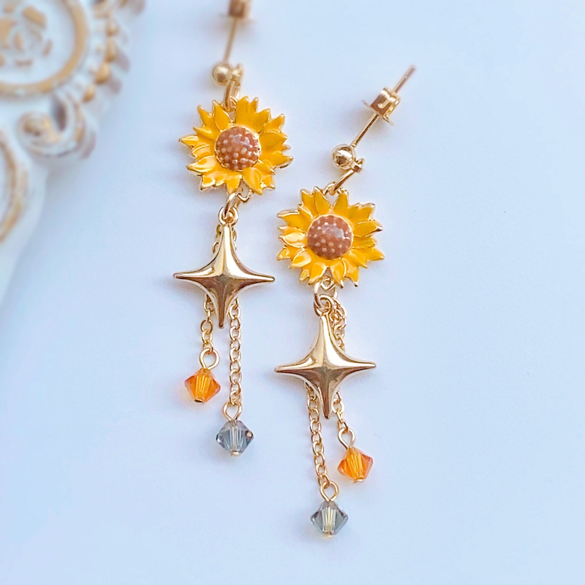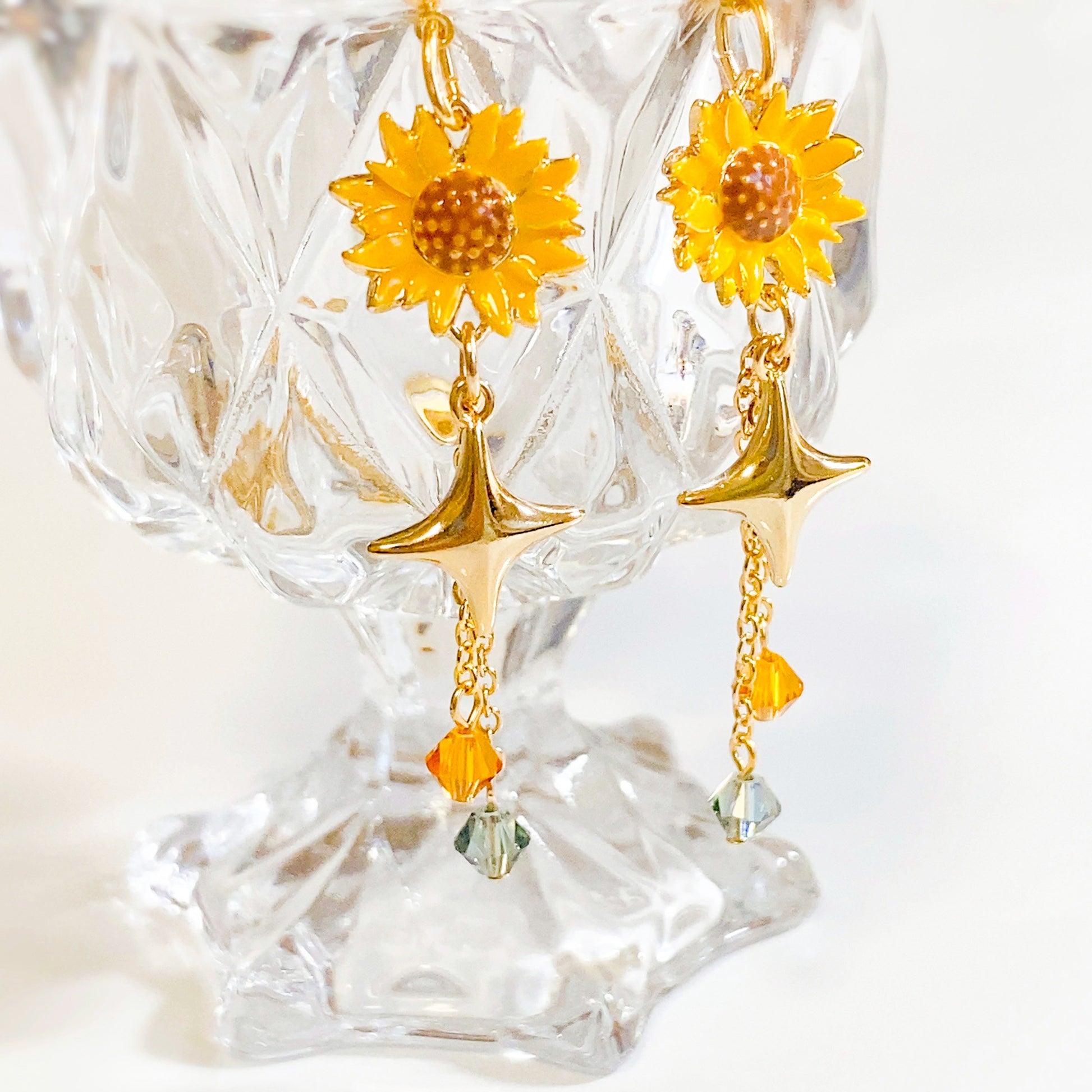 明るく溌剌としたイメージで、満開のひまわりとシャイリングチャームを組み合わせました。